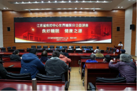 2023年3月23日,江苏省疾控中心慢非传所联合工会邀请江苏省省级机关医院神经内科的郑慧芬主任医师和她的睡眠团队举办了一场有关睡眠的公益讲座。中心在职和离退休职工共70余人参加讲座。