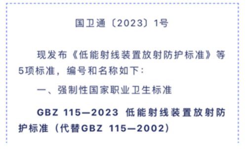 由江苏省疾病预防控制中心牵头修订的国家职业卫生标准《低能射线装置放射防护标准》(GBZ115-2023)于2023年3月7日正式发布,该标准从2020年初立项申报,历经多次标委会讨论、专家意见征求,并修改,历时3年完成。
