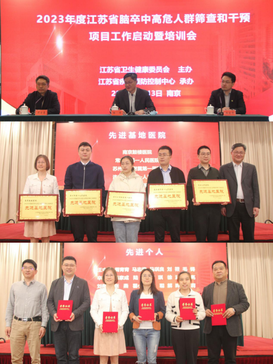 陆伟处长在开幕式上做指导性讲话,他对脑卒中项目背景及2022年全省项目工作做了简要回顾,对2022年全省项目工作取得的成绩给予肯定。对2023年项目工作提出了三点建议:一是提高对项目工作的认识;二是加强项目工作的管理;三是提升项目工作的质量。接着他代表省项目办宣读了《关于2022年度脑卒中高危人群筛查和干预项目先进集体和个人的通报》。陆伟处长和李永昌主任为2022年度项目工作中有突出贡献的单位和个人颁发了“先进集体”奖牌和“先进个人”奖状。
