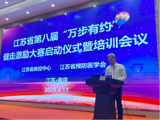 2023年4月17日,第八届“万步有约”健走激励大赛江苏省启动仪式暨培训会在南京举办。江苏省疾控中心党委书记朱宝立出席启动仪式。江苏省疾控中心慢非传所副所长张永青主持启动仪式。来自全省25个参赛县区代表及相关设区市全民健康生活方式骨干技术人员60余人参加会议。
