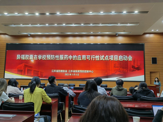2023年5月6日下午,异福胶囊在学校预防性服药中的应用可行性试点项目启动会在南京举办。省疾控中心慢性传染病防制所所长、省防痨协会理事长竺丽梅,南京市第二医院(江苏省传染病医院)结核科主任、省防痨协会秘书长曾谊参加会议。来自项目地区各设区市、县(市、区)疾控中心结防科科长、定点医疗机构结核科负责人等50余人参加此次启动培训会议。