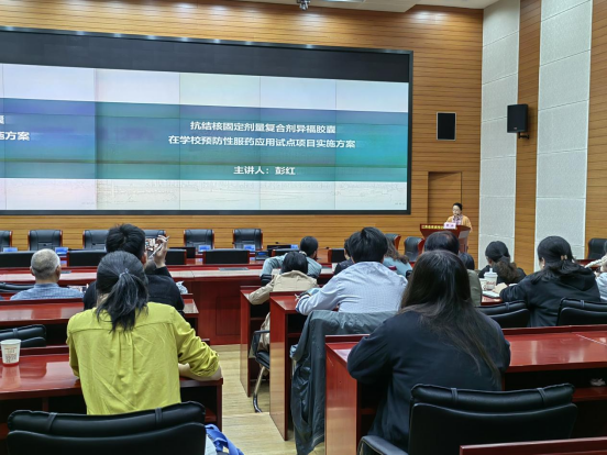 在会议上,南京市第二医院结核科主任曾谊讲授了抗结核固定剂量复合制剂的临床应用及规范;南京市第二医院结核一科主任胡春梅就学生预防性服药要点及注意事项进行了讲解;省疾控中心慢传所彭红主任详细介绍了异福胶囊在学校预防性服药应用试点项目实施方案;省疾控慢传所副所长刘巧介绍了电子药盒在预防性服药管理方面的应用。最后,竺丽梅所长主持会议讨论,参会人员对项目的具体实施提出了宝贵的意见和建议。