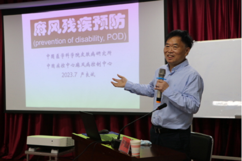 中国麻风防治协会副会长 严良斌教授为学员讲解麻风残疾预防