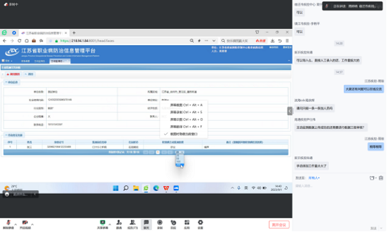 会上,负责数据录入的工程师首先详细介绍了江苏省职业病防治信息管理平台的职业病主动监测数据填报与审核等功能,以及各模块数据填报注意事项,并实际演示了相关操作流程,随后参会人员就平台的使用细节进行了交流和讨论。