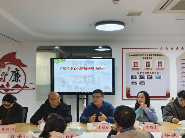 2023年11月30日,中心联合常州市天宁区疾控中心赴雨花台区开展医防融合专题调研。雨花台区卫健委副主任李斌、雨花台区卫健委疾控科副科长张红梅、雨花台区疾控中心副主任杨诚、雨花台区疾控中心党支部副书记翁蕾、常州市天宁区疾控中心疾控科科长言文杰及雨花台区部分医疗机构相关负责人参加了此次调研活动。