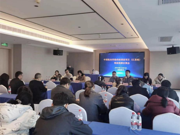 肌肉骨骼疾病主要包括肌少症、骨关节炎和骨质疏松等慢性疾病,患病率高,常导致老年人疼痛、日常活动减少、平衡协调能力下降、行动缓慢、跌倒和骨折等,严重降低了老年人身体健康和生活质量。中国疾控中心慢病中心拟开展全国层面的肌肉骨骼疾病调查,掌握我国居民肌肉骨骼疾病的现状和影响因素,以便国家出台相关政策,帮助居民及早采取肌肉骨骼疾病防控措施,提高居民健康水平。江苏省共有6个项目点(南京六合区、南通崇川区、徐州泉山区、苏州吴江区、淮安涟水县和泰州靖江市)参与了本次调查项目。为了让各个项目点能够相互学习、取长补短,省级项目组在南通市崇川区召开现场观摩会,来自慢病中心国家项目办和省级项目组的相关人员对崇川区项目开展情况进行现场督导和技术指导。省内其余5个调查点的主要负责人员参加了本次观摩和培训。