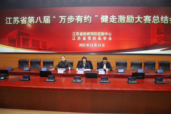 2023年12月12日,江苏省第八届“万步有约”健走激励大赛总结会议在南京举办。江苏省疾控中心党委副书记、副主任徐燕、江苏省预防医学会秘书长蒋辽远出席开幕式。江苏省疾控中心慢非传所副所长苏健主持会议。来自全省25个参赛县(市、区)及相关设区市代表共60余人参加会议。