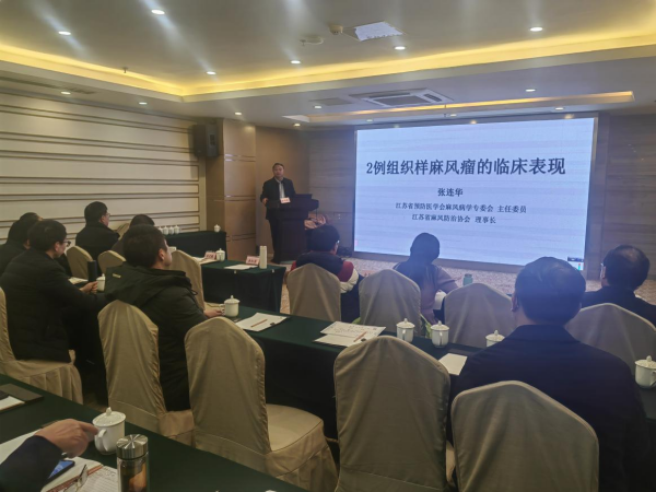 专委会常务委员、中国疾控中心麻风病控制中心麻风病防治室主任余美文教授做了“全球及我国麻风病流行概况”专题报告,介绍了全球和我国麻风流行概况,特别是我国周边国家麻风流行情况,提醒我们在“一带一路”背景下做好防治经验输出的同时,积极应对国外病例输入的挑战;东南大学在读博士李翔从麻风流行现状、化学预防策略、遗传分析、单细胞测序、新冠疫情下的麻风防治等方面介绍了全球麻风研究的重点和进展;专委会委员、南通市疾控中心马云副主任医师介绍了“麻风溃疡康复护理项目”工作开展情况,为解决好麻风常见并发症“溃疡”难题提供了有益探索;专委会委员、省疾控中心李国莉主管技师介绍了国家即将出台的麻风新规划背景下适宜推广的麻风诊断技术;专委会主任委员张连华主任医师做了“2例组织样麻风瘤的临床表现”专题报告,他澄清了组织样麻风瘤的概念,并通过我省2023年新发的2例组织样麻风瘤病例,系统地介绍了组织样麻风瘤的临床表现,提醒大家关注麻风的特殊形态,做好早诊早治。