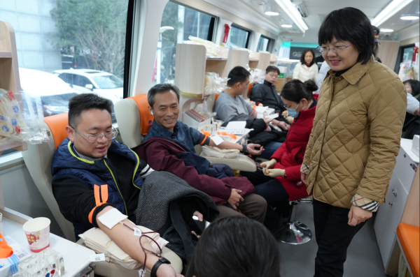 近期,受雨雪和寒潮低温等天气因素影响,街头献血人数锐减,省血液中心告知血液库存量已达最低警戒线,临床血液供给面临严峻挑战。为此,工会立即发出献血倡议,各部门全面动员,精心组织,近80位职工踊跃报名。工会按照中心领导要求在培训基地协助下为参加献血的职工精心准备了丰盛的早餐、营养午餐和补血汤。上午8时许,C楼大厅已经人头攒动,职工们纷纷填写表格,排队抽血化验合格后有序进入献血车进行献血。徐燕副书记走上献血车,亲切问候正在献血的职工,其中包括多次献血的老同志和刚参加工作第一次献血的年轻同志,赞扬他们崇高的思想品德和乐于助人的奉献精神,并叮嘱他们一定要注意休息,补充营养。献血过程中,省血液中心工作人员深入宣传献血的基本常识,同时提供营养食品和热饮,防止献血者出现不适症状;职工间也互相鼓励,消除个别初次献血同志的紧张感,现场气氛温馨融洽。各部门、党支部的负责人以及工会委员、小组长和工作人员组成后勤保障小组,在现场前后忙碌,做好引导和服务工作。许多科所职工还自备相机记录下同事们献血的温暖瞬间。
