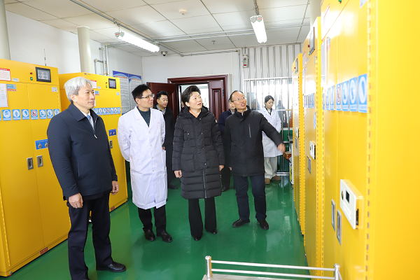 2月8日上午,省卫生健康委党组书记、主任谭颖,省卫生健康委副主任、党组成员、省疾控局局长周明浩一行来到我中心慰问一线在岗工作人员,并实地察看了消防控制室、监视监控室、危化品库、电瓶车棚等重点场所。