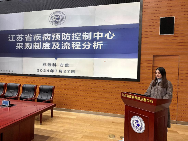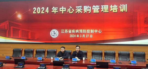 2024年3月27日,中心采购管理专题培训班在C208会议室举办。江苏省疾控中心副主任霍翔出席开幕式。江苏省疾控中心涉及项目调研、参数制定和采购工作部门的业务骨干参加了本次培训。江苏省疾控中心总务科科长顾呈华主持会议,