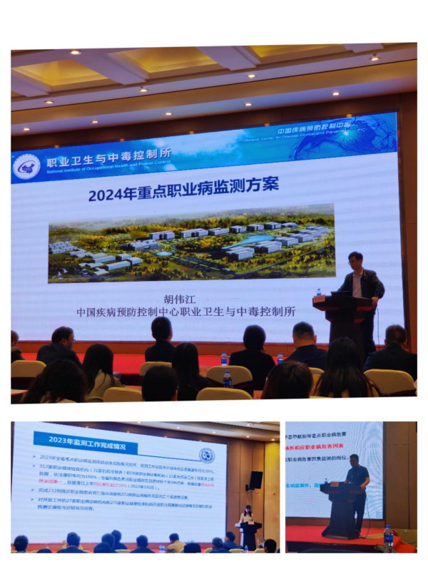华海庆处长在讲话中充分肯定了过去一年全省重点职业病监测工作取得的成效,明确了下一阶段的工作任务。同时对监测工作提出要求:一是建立健全防治体系,为掌握职业病防治形势打下基础;二是进一步挖掘监测数据,为行政部门相关政策提供依据;三围绕高质量发展前提,树立两大目标。朱宝立书记对2023年江苏省重点职业病工作做了总结工作,对各设区市参与重点职业病监测项目的同志所做的努力表示感谢,并对2024年的工作提出新的要求:一是在思想上高度重视;二是按照方案稳步推进,确保高质量完成中央下达的指标任务;三是从部门设置、人员配备等方面提升职业卫生能力。接着,江苏省疾控中心职业病防治所副所长谢丽庄宣读关于2023年度江苏省重点职业病监测与尘肺病项目工作的通报。
