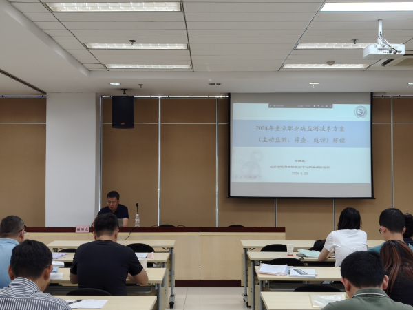 朱宝立书记讲话,他详细地解读了江苏省职业病防治条例,肯定了信息报告工作在职业健康工作中的重要地位。培训班还特别邀请了中国疾病预防控制中心职业卫生与中毒控制所的王丹研究员就职业病及健康危害因素检测信息系统填报与审核要点与学员们交流授课。江苏省疾控中心职业病防治所所长张恒东、副所长韩磊、副所长谢丽庄、副所长赵圆等就职业病防治形势与重点工作、重点职业病监测与质量控制、2024年江苏省重点职业病监测技术方案解读以及职业病监测和信息报告管理等方面向大家做了详细的讲解。随后,省级疾控中心信息所的两位专家介绍了网络信息安全以及信息系统账户管理等相关内容。中卫信周婷婷工程师结合实际工作介绍了平台数据信息交换及要求。