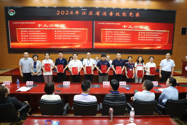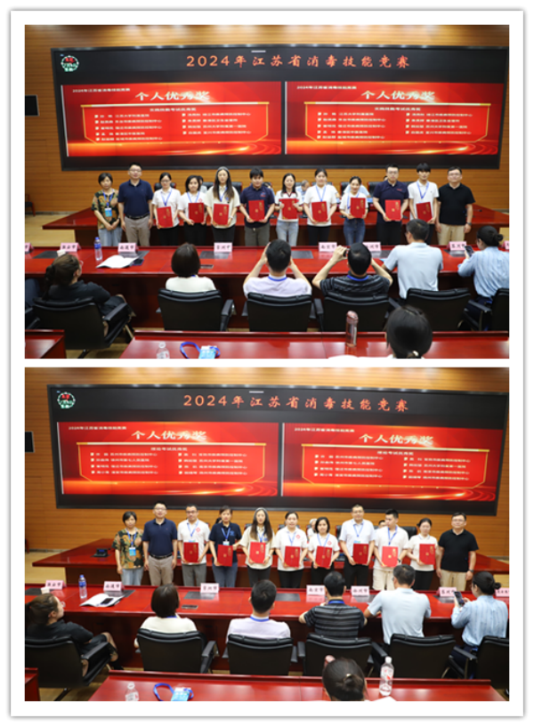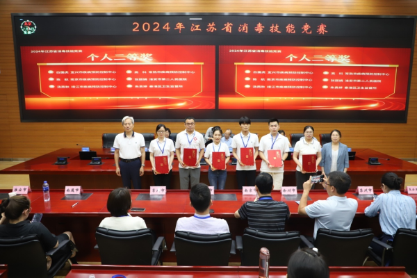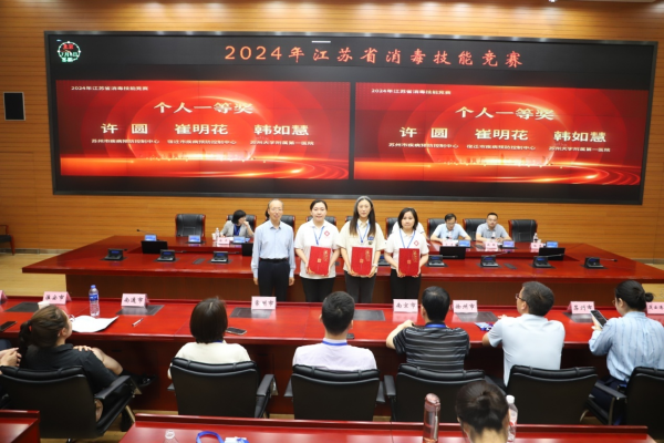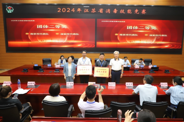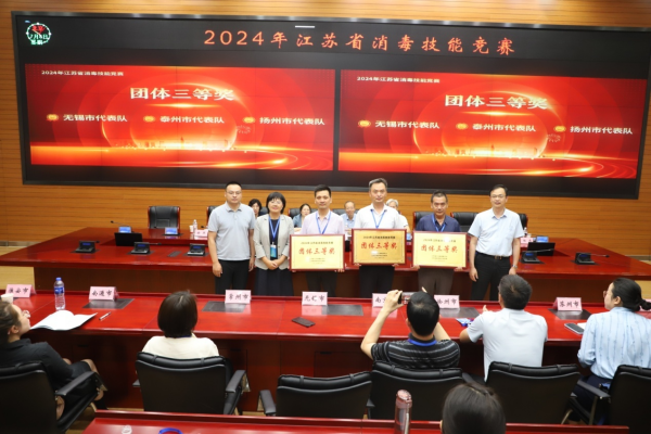 竞赛共分为闭卷理论考试和实践技能操作考试两部分,内容主要围绕传染病消毒、医院感染控制、环境卫生、个人防护、消毒效果监测与评价等展开,从多个维度考核从事消毒、感染控制与环境卫生工作人员的综合技能。经过紧张激烈的角逐,苏州市代表队获得团体一等奖,南京市、淮安市代表队获得团体二等奖,无锡市、泰州市、扬州市获得团体三等奖。许圆、崔明花、韩如慧3名参赛选手获得个人一等奖,白国虎等6名参赛选手获得个人二等奖,吴如芬等9名参赛选手获得个人三等奖。此外,本次竞赛还设置了个人单项奖,许圆等8名参赛选手获得理论考试优秀奖,孙艳等9名参赛选手获得实践技能操作优秀奖。