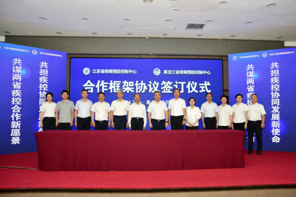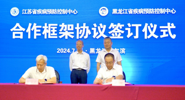 2024年7月25日,江苏省疾病预防控制中心和黑龙江省疾病预防控制中心交流合作框架签约仪式在哈尔滨举行。根据交流合作框架协议,两地疾控中心将在党建联建、人才培养、科研合作、实验室建设、突发公共卫生事件联防联控等方面进行深度交流合作,优势互补,资源共享,合作共赢,加强两省疾控系统共同发展,进一步提升两省疾病预防控制服务能力和公共卫生保障能力,促进疾病预防控制建设高质量发展。