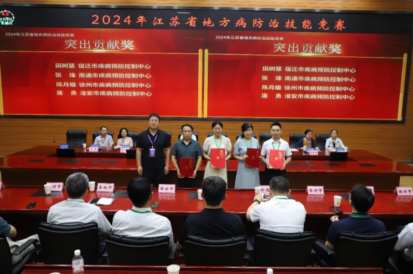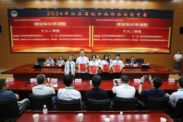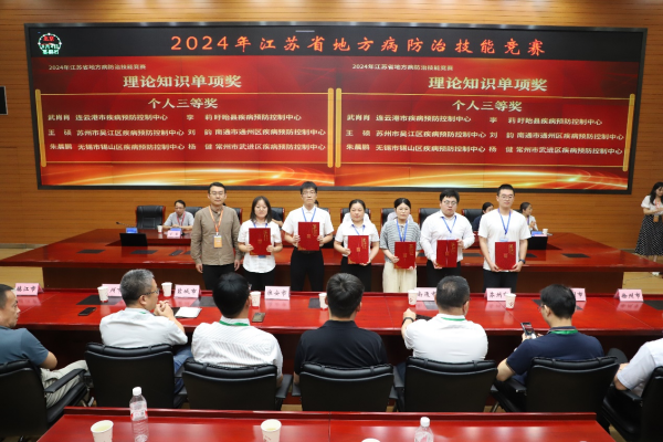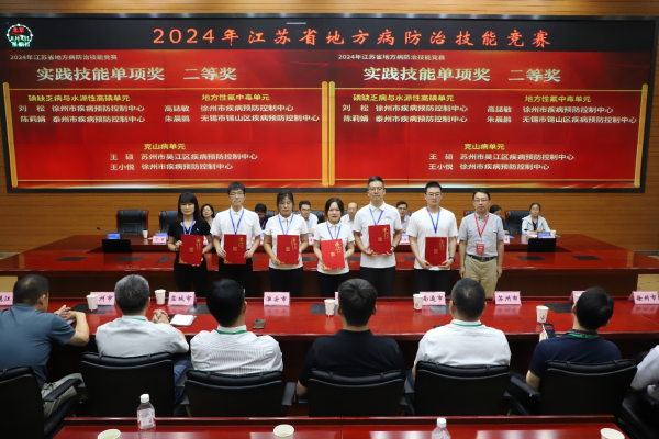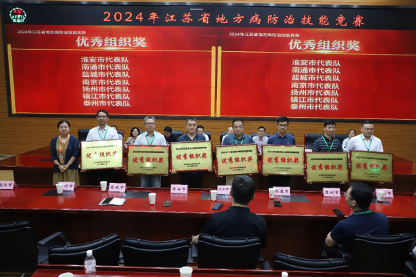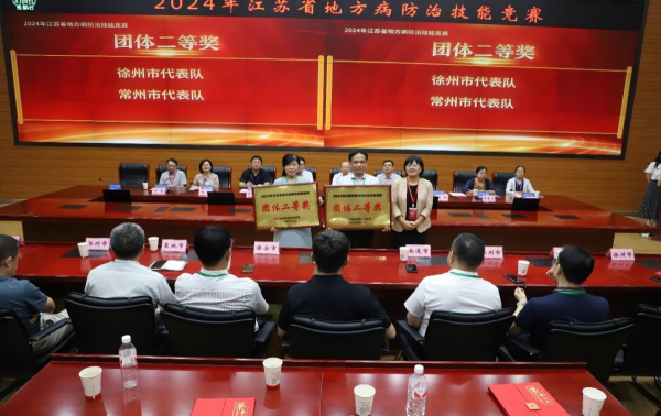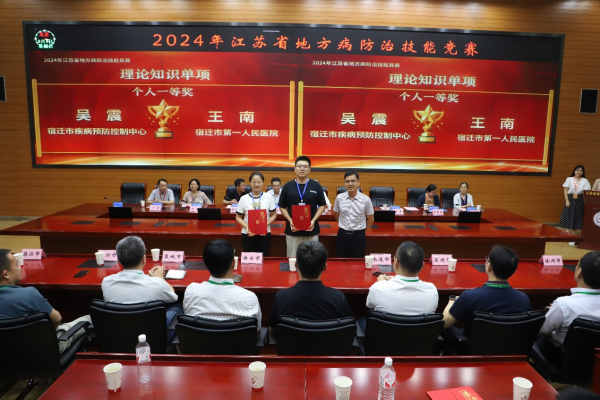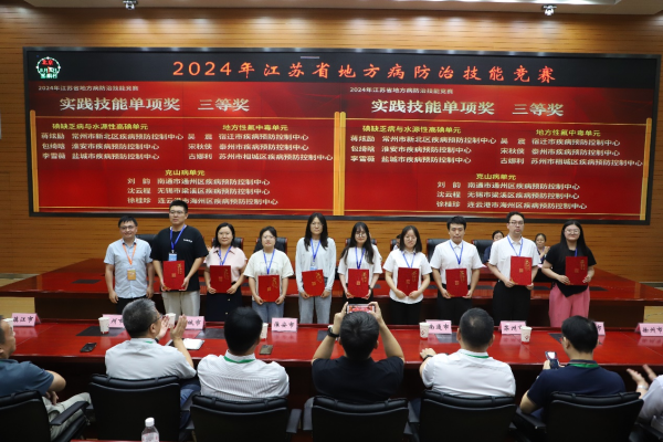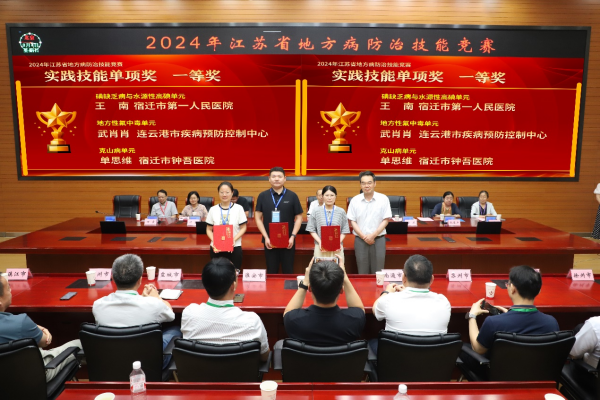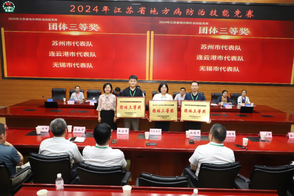 共有40名竞赛队员参加了理论笔试和碘缺乏病与水源性高碘、地方性氟中毒、克山病等三个单元的实践技能测试。经过规范严谨的评分核分,最终获得团体一等奖的是宿迁市代表队,获得团体二等奖的是徐州市、常州市代表队,获得团体三等奖的是苏州市、连云港市、无锡市代表队,淮安市、南通市、盐城市、南京市、扬州市、镇江市和泰州市等7个代表队获得优秀组织奖。宿迁市疾控中心田树慧,徐州市疾控中心陈月娥,淮安市疾控中心唐勇,南通市疾控中心张烽4名地方病防治专家获得突出贡献奖。