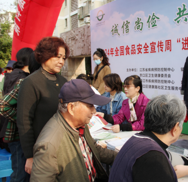 2024年11月4日下午,由江苏省卫健委、江苏省疾控中心联合镇江市卫健委、镇江市疾控中心及京口区相关单位,在京口区江滨新村社区体育广场举办了2024年食品安全宣传周进社区活动。