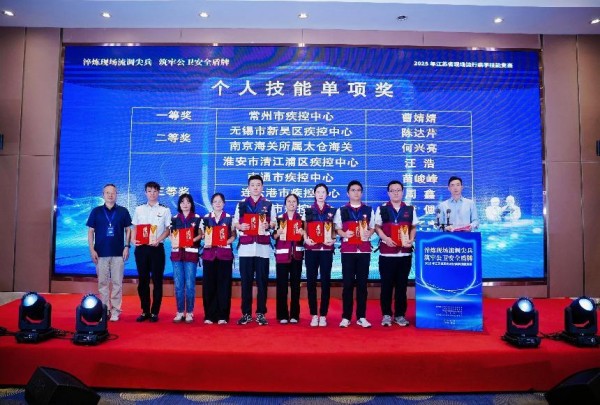 江苏省疾病预防控制局副局长、二级巡视员顾帮朝,江苏省疾病预防控制中心主任羊海涛,江苏省疾病预防控制中心副主任霍翔,江苏省省直机关工会副主任陈涛,江苏省疾病预防控制局传防处四级调研员严兵,南京海关卫生检疫处副处长吴海磊,新疆克拉玛依市疾病预防控制中心副主任李涛出席活动,并为获奖的团队和选手颁奖。