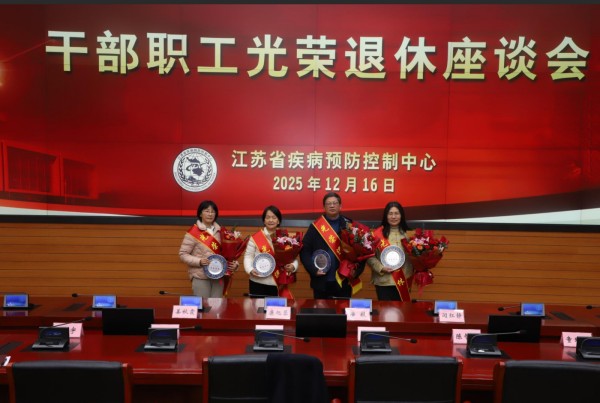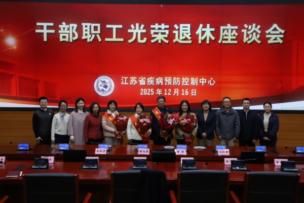 2025年12月16日上午,江苏省疾病预防控制中心在C208室组织召开了2025年度干部职工光荣退休座谈会,中心主任羊海涛、党委副书记/副主任/工会主席徐燕及工会、人事、党办、预防医学会、性艾所、编辑部、职防所等部门负责人和部门代表参加座谈会,会议由徐燕主席主持。