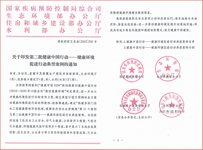 近日,国家疾病预防控制局、生态环境部、住房和城乡建设部、水利部等四部门联合印发第二批健康中国行动——健康环境促进行动典型案例,江苏省疾控中心环境所申报的 “全覆盖多维度空气污染人群健康监测平台助力‘美丽江苏’” 案例成功入选,为全国推进健康环境建设提供 “江苏经验”。
