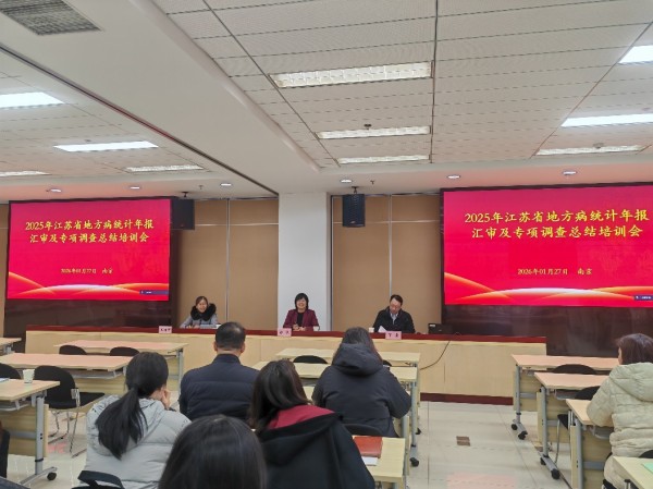 1月26日-27日,2025年度全省地方病统计年报汇审及专项调查总结培训会在南京召开。江苏省疾控中心党委副书记、副主任徐燕出席会议并致辞。各设区市疾控中心地方病防制科科长、地方病监测统计年报工作人员、2025年全省重点甲状腺疾病专项调查项目县及2026年氟骨症专项调查项目县疾控中心地方病防制科科长和地方病业务骨干共计约70人参加了本次会议。
