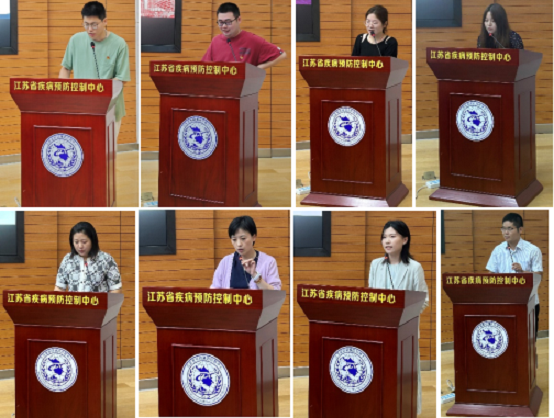 随后,江苏省肿瘤医院的温东洋、周杰,江苏省中西医结合医院的王青青、吴歆,江苏省省级机关医院的王惠、徐瑾,我中心的罗鹏飞、李晔分别作青年文明号创建工作汇报。