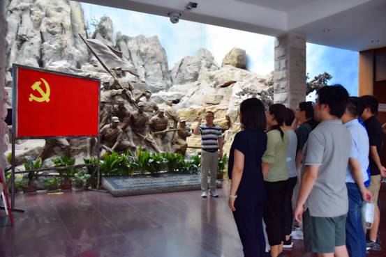 上午,大家先到达镇江市句容茅山新四军纪念馆参观学习。纪念馆展览区拥有“苏南新四军抗日斗争基本陈列”、“苏南新四军将帅陈列”、“新四军廉政建设史实展”、“茅山新四军英烈馆”和“新四军先遣支队暨韦岗战斗历史陈列”等1个基本陈列馆、4个专题陈列馆和1个临时陈列馆,共展出珍贵文物和历史资料6000余件。一幅幅珍贵的图片,一件件真实的物品,一份份详实的资料,诉说着茅山革命老区抗战年代前辈英烈英勇奋战、舍身报国的感人故事。随后现场开展党员集体过政治生日活动,支部书记杨国平带领全体党员同志面对鲜红的党旗,庄严地举起右手,重温入党誓词,向党员同志送上“政治生日”纪念卡,并勉励党员同志要常思入党初衷、铭记入党誓词、牢记党员义务,时刻不忘记党员身份,以实际行动践行全心全意为人民服务的宗旨,永葆党员的政治本色。