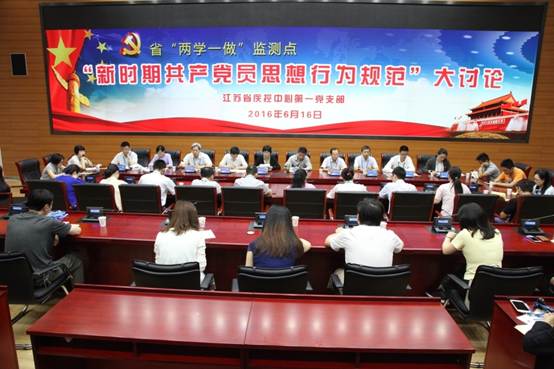 2016年6月16日上午,省“两学一做”监测点——中心第一党支部在C楼208室开展“新时期共产党员思想行为规范”大讨论。省委“两学一做”督导组二组副组长、省委组织部组织二处副处长(主持工作)单建鸣,省卫生计生委党组成员、副主任、直属机关党委书记徐东红,省卫生计生委直属机关党委副书记赵胜忠,中心党委书记、副主任朱宝立,中心主任、党委副书记周明浩出席讨论会。中心各党支部书记、副书记,第一党支部全体党员参加讨论会。讨论会由第一党支部书记刘代为主持。