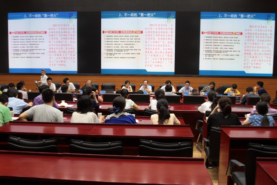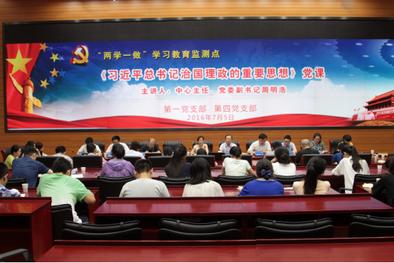2016年7月5日下午,为庆祝中国共产党成立95周年,将“两学一做”学习教育活动进一步推向深入,充分发挥“两学一做”学习教育监测点先行先试、引领示范作用,第一党支部、第四党支部联合召开全体党员大会,认真学习近平总书记在庆祝中国共产党成立95周大会上的讲话精神,开展“联合讲党课”活动。中心主任、党委副书记周明浩参会,并给参会党员上了题为《习近平总书记治国理政的重要思想》的一堂党课。活动由第四党支部书记褚宏亮主持。第一党支部书记刘代为同志带领全体党员认真学习习近平总书记讲话精神。