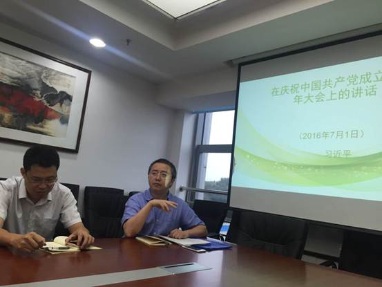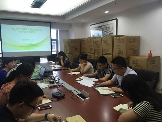 7月18日下午3时,中心第二党支部在C504会议室召开支部会议。支部会由支部书记潘毅主持,支部副书记竺丽梅作专题党课,集中学习习近平总书记在庆祝中国共产党成立95周年大会上的讲话。会上每位党员结合自己的学习思考,逐一交流学习体会。