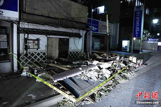 3月13日凌晨,中新社记者驱车约12小时,抵达接近日本东北大地震震区的福岛县郡山市,该市有部分老建筑出现墙体崩塌的情况,图为一处房屋墙体崩塌现场。中新社发 侯宇 摄