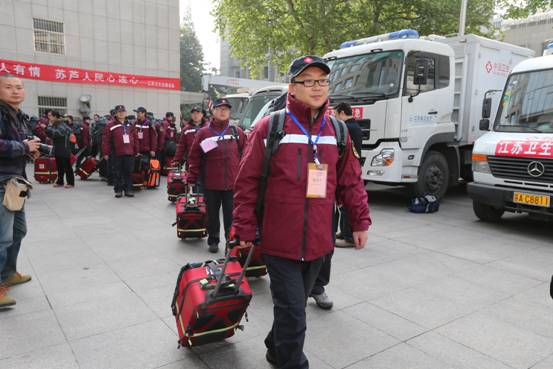 首支启程奔赴四川雅安地震灾区的江苏卫生应急队,省卫生厅在不到12小时,以江苏省疾控中心国家突发急性传染病防控队为骨干,抽调省人民医院、省卫生监督所、省肿瘤医院、南京医科大学第二附属医院、省中医药研究院、省血液中心,南京市第二人民医院、南京市脑科医院和徐州市、邳州市、铜山区疾控中心的传染病防控、外科、公共卫生、健康教育、环境卫生、食品卫生、心理卫生、精神卫生、理化检测、消毒杀虫、免疫规划、机电工程、信息和后勤保障共43名专业人员(含江苏省疾控中心22名队员)。省广播电台、中国江苏网和现代快报各派出1名记者随行报道。