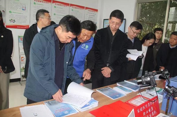 在高邮市经济开发区,王建冬详细询问了“职业健康+家医签约”工作相关做法,听取了“医”心助企家医工作室建设背景、团队组成、工作职责、服务内容等情况汇报,现场查阅“医”心助企家医团队目标责任书、服务记录本、预约上门手册等健康管理档案,并与企业负责人、家庭医生团队成员深入交流,了解职工健康随访、体检异常处置、入企技术指导等具体做法。王建冬对高邮市以家庭医生签约服务创新为路径,通过“五方共建”打通职业病防治“最后一公里”的服务模式表示充分肯定。在职业健康服务站,王建冬向相关负责人询问辖区工业企业分布、接害劳动者基数、政府投入保障力度等情况,逐项查阅职业健康服务站日常工作台账,详细了解服务站的组织架构、工作职能和运行质态等。