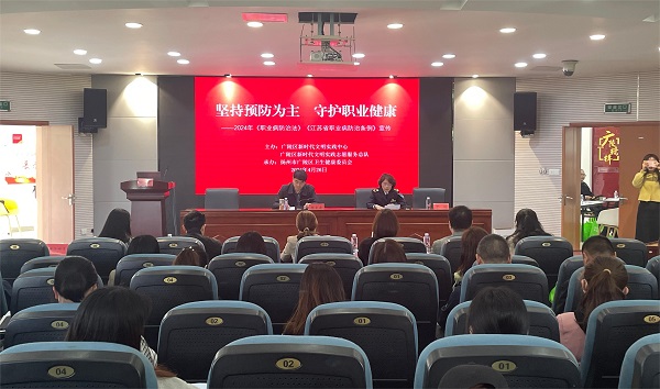 为深入贯彻《职业病防治法》,进一步推进职业病防治工作,增强各用人单位和劳动者对职业病防治的法制意识,保障劳动者健康权益,4月26日,广陵区在区新时代文明实践中心举办了以“坚持预防为主,守护职业健康”为主题的《职业病防治法》宣传培训活动。区卫健委副主任颜士会,各园区、镇街分管负责人、职业健康管理工作负责人等参加了活动。全区100余家企业的职业卫生分管负责人和职业卫生管理人员参加培训。