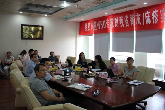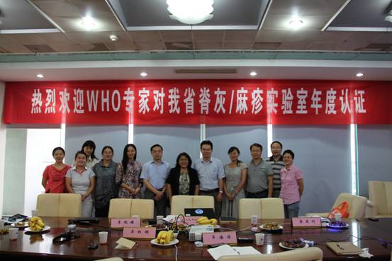 2012年9月2-5日,中国疾控中心脊灰及麻疹实验室李晓嫘、崔爱利陪同世界卫生组织(WHO)专家Dr.Fem Julia Paladin,现场认证我省脊灰和麻疹实验室。省疾控中心副主任羊海涛,免疫规划所所长马福宝、副所长汪志国和实验室等相关人员参加汇报会。省卫生厅疾控处处长吴红辉出席反馈会。