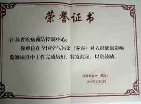 会议通报了全国各省环境与健康监测项目工作情况。江苏省在城市生活饮用水监测项目和空气污染健康影响监测项目中获得佳绩,受到国家疾控中心环境所表彰,成为同时获得这2项荣誉的7个省级疾控中心之一。此外,省疾控中心环境所3名同志还获得国家单项表彰。