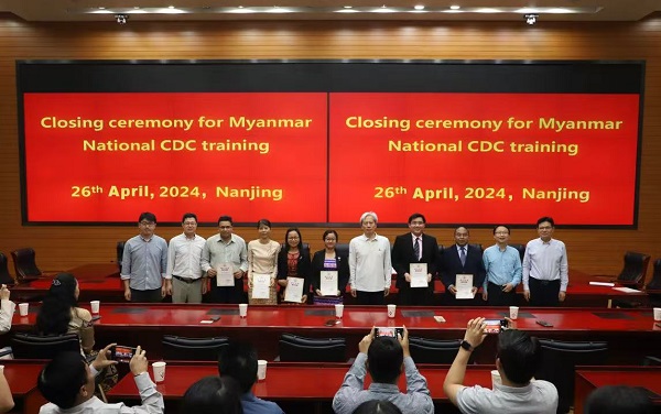 2024年4月26日16时,“援缅甸国家疾控中心技术人员培训班”结业典礼在中心举行。省疾控中心各带教科所主要负责人、缅甸国家疾控中心参训技术人员出席。省疾控中心技术服务部部长张锋主持结业典礼。